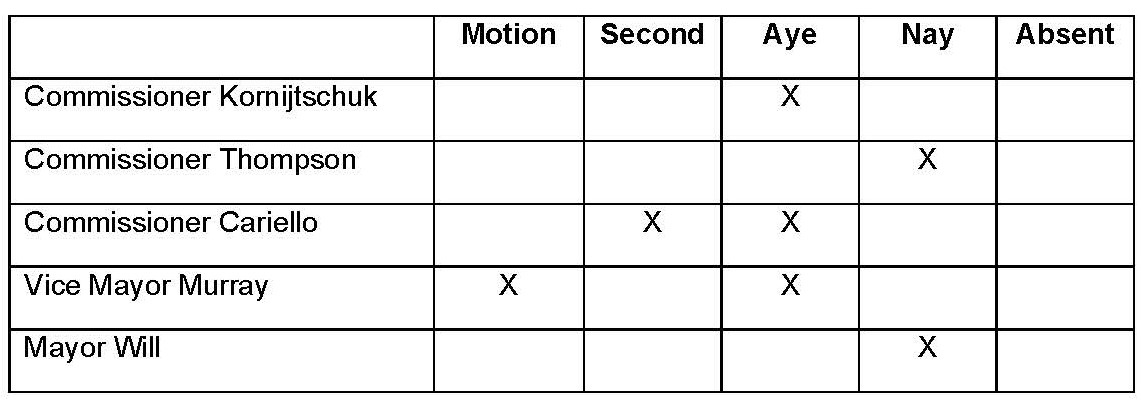 At last night’s special meeting, held on Monday, March 16th, 2026, Ordinance 2026-02 was adopted by the Town Commission with a final vote of 3-2. The vote table is below: